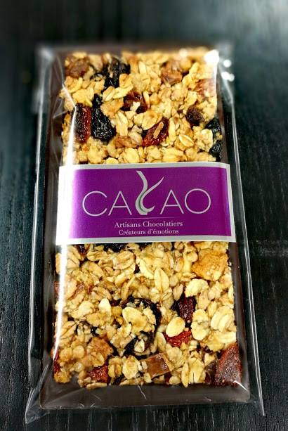 Tablette chocolat noir, praliné fraise et croustillant framboise.