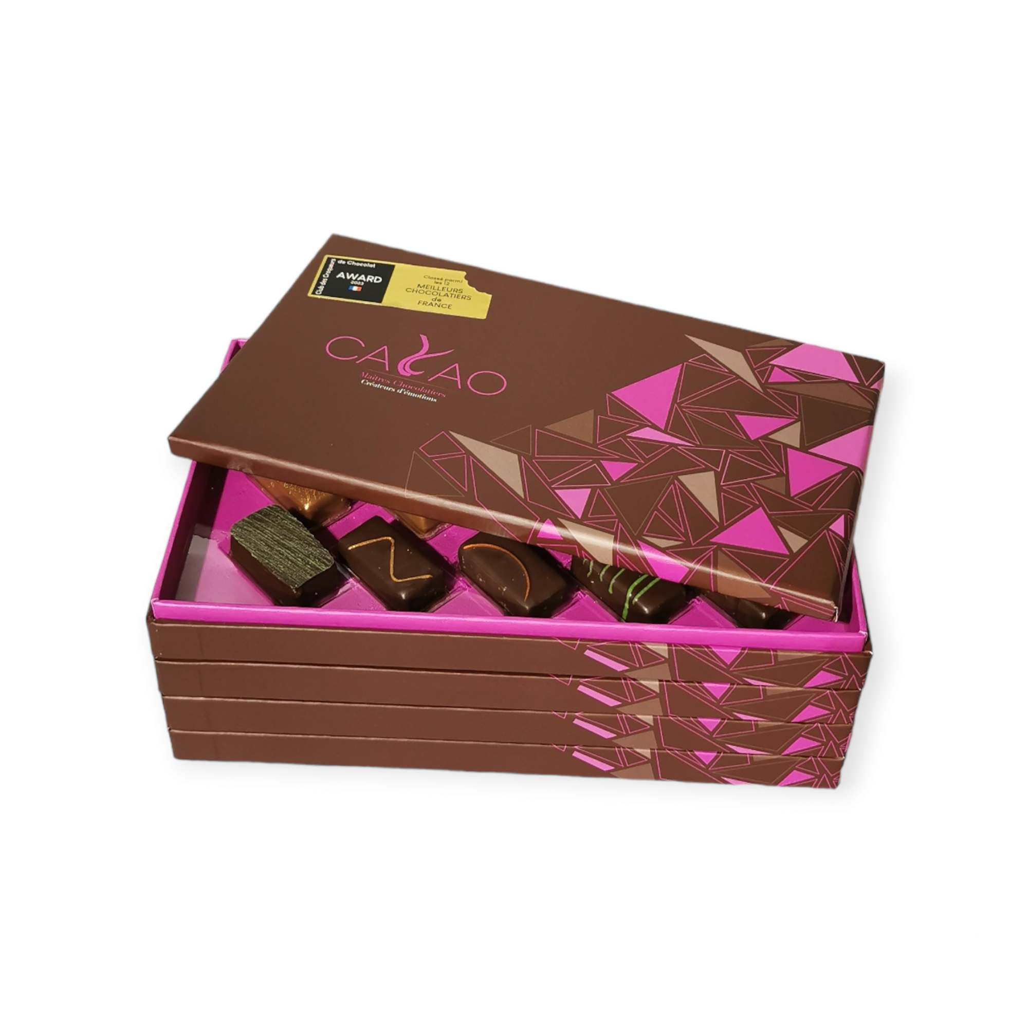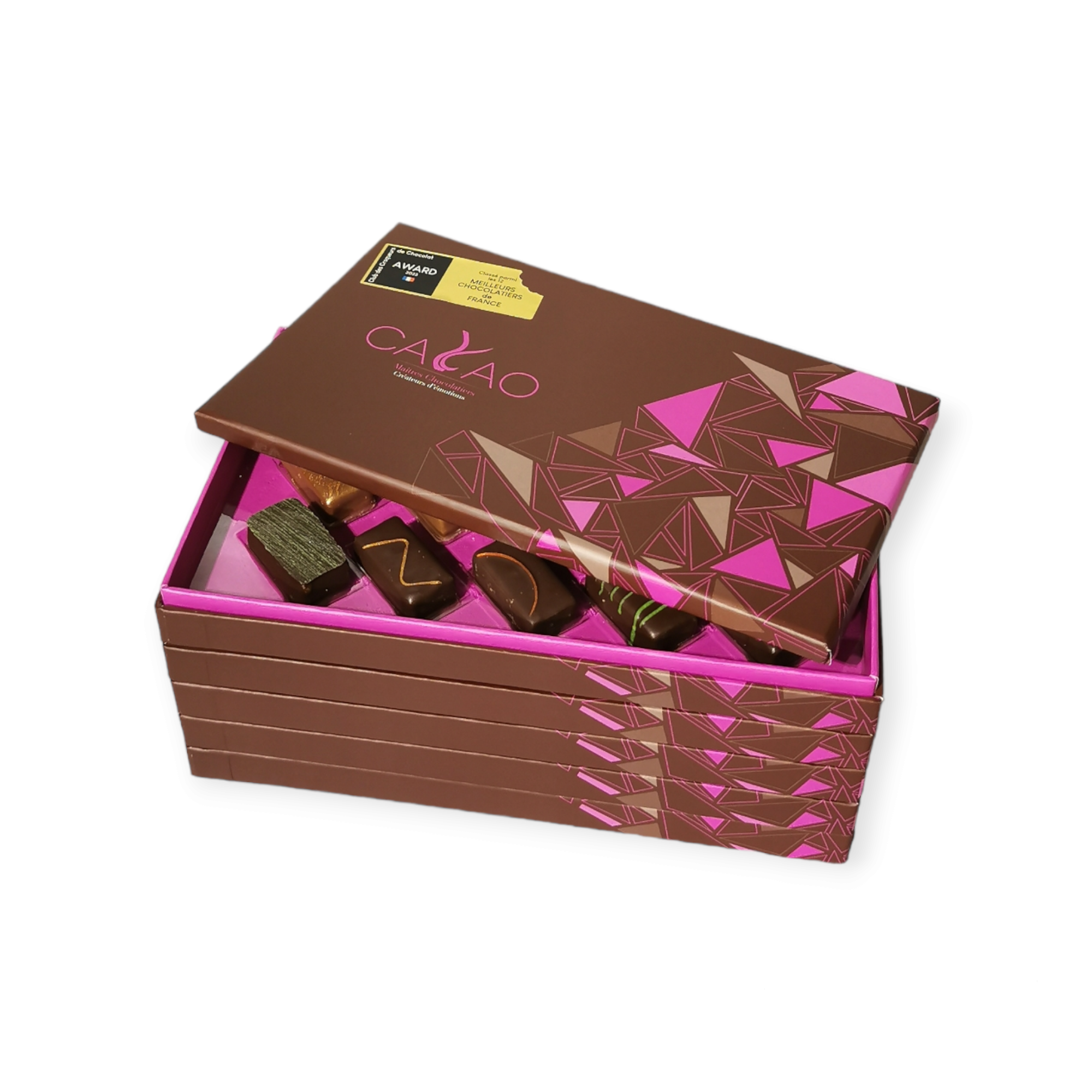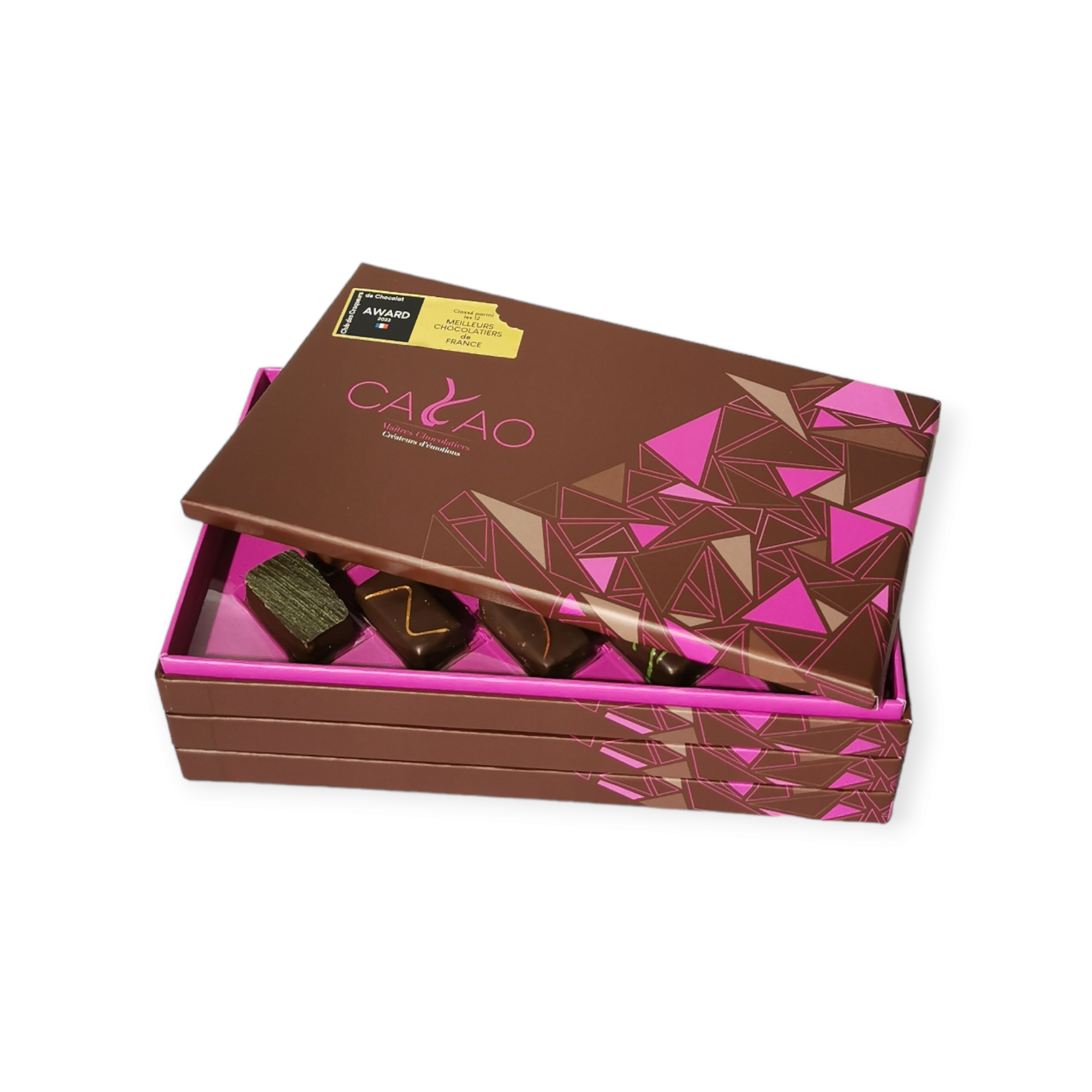 Ganaches fondantes, pralinés gourmands, bicouches surprenantes… chaque chocolat est une découverte.