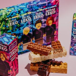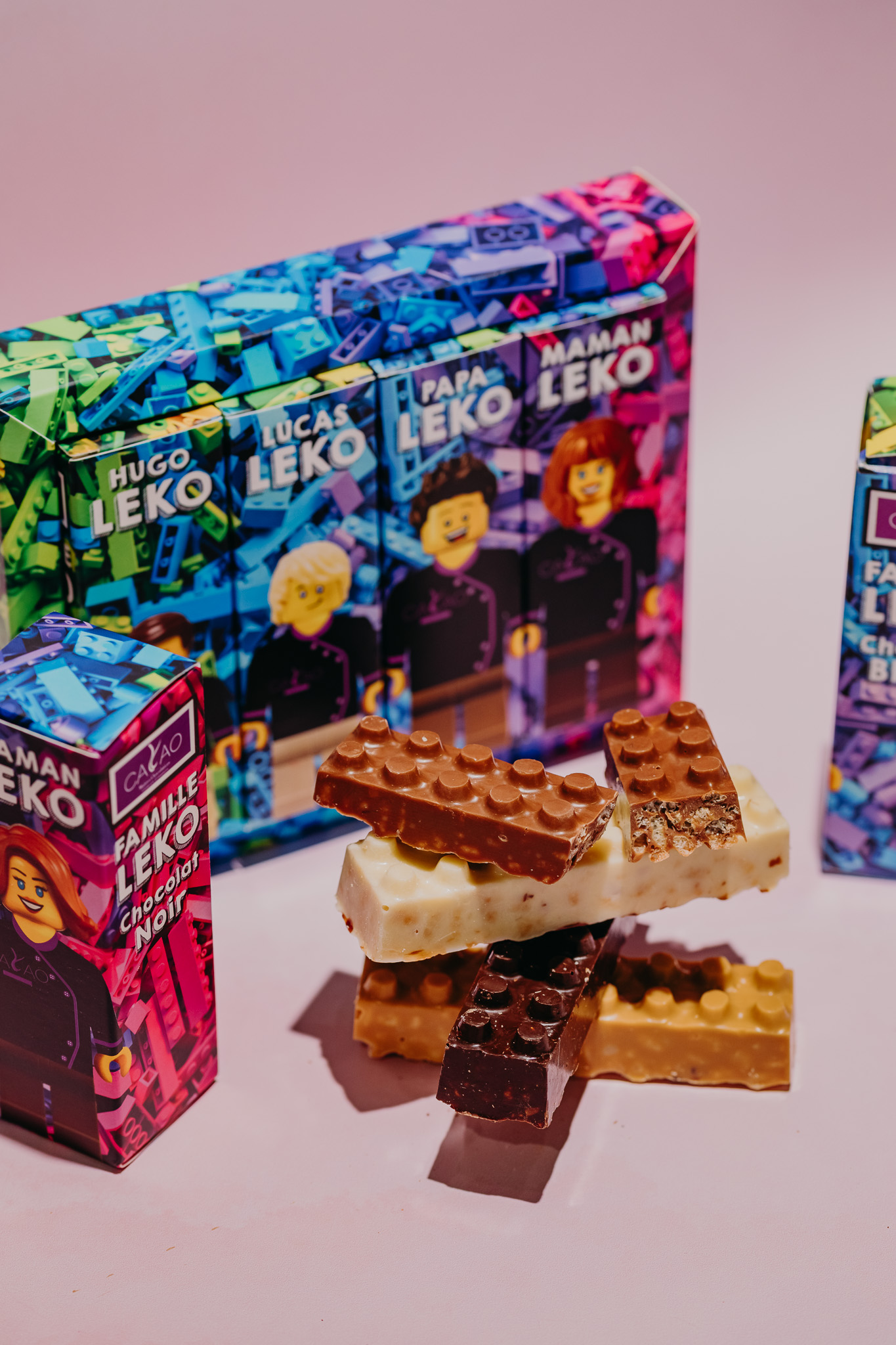 Inspirées de l’univers ludique des briques iconiques, ces barres chocolatées en forme de petites constructions rendent hommage à chaque membre de notre famille. Un produit à la fois gourmand et ultra personnel, pensé pour faire sourire autant que pour régaler.