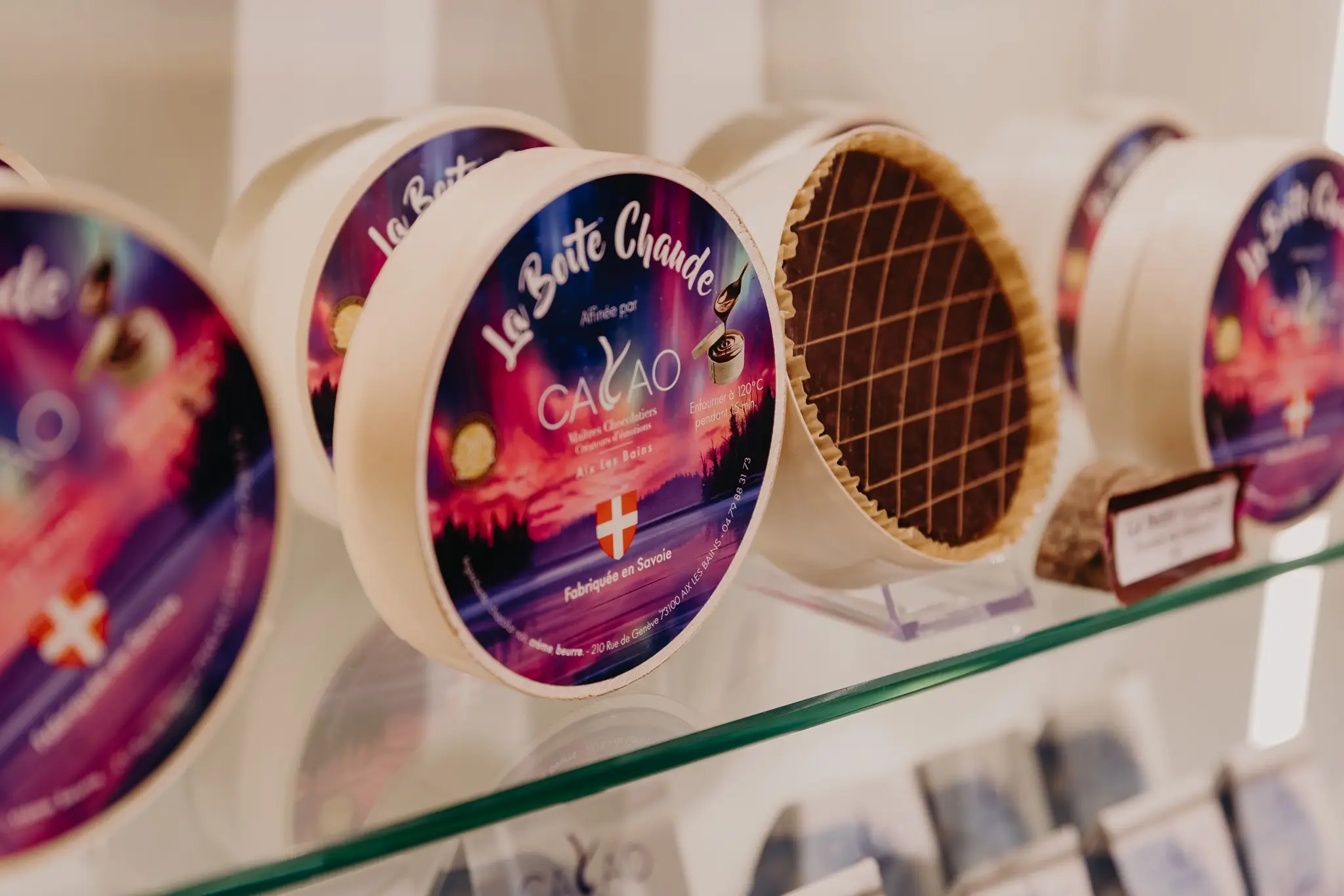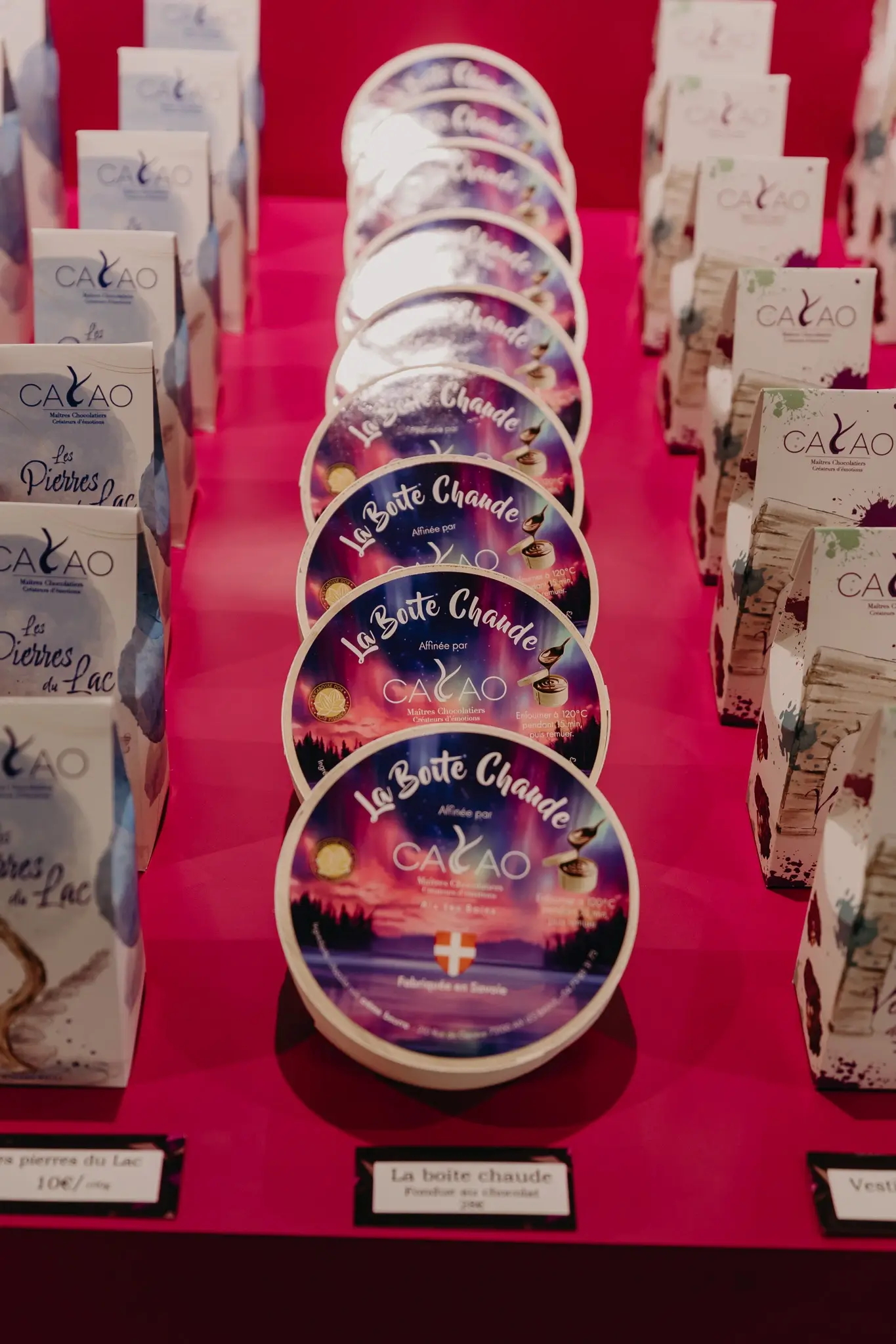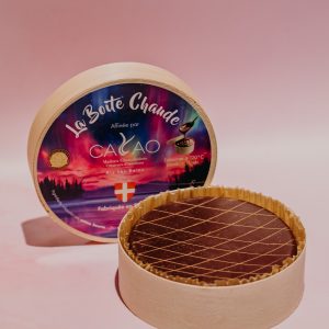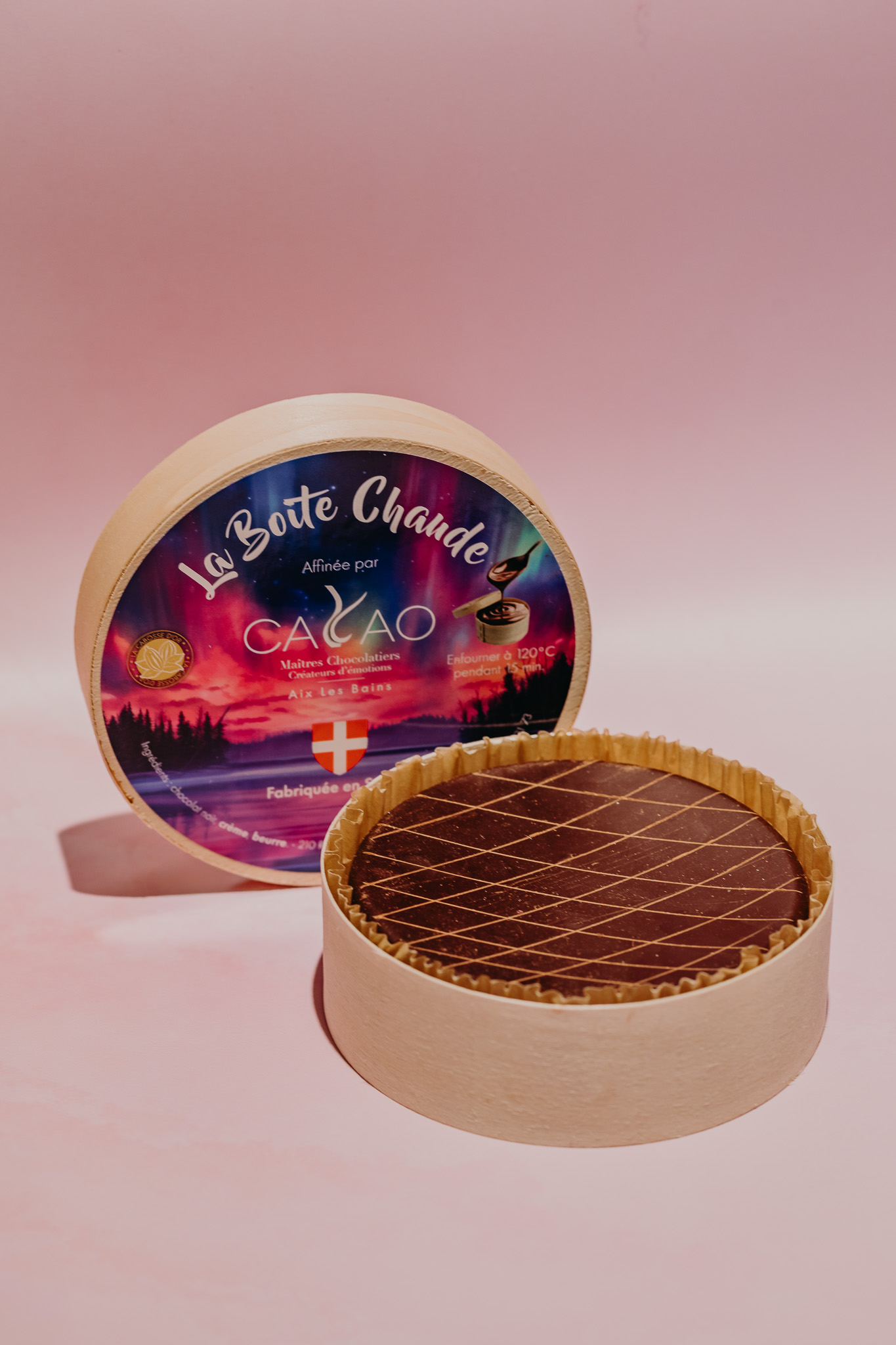 La Boîte Chaude – Exclusivité Cakao est une création originale pensée pour un moment de partage gourmand. Présentée dans un écrin rond élégant, elle renferme une préparation chocolatée à faire fondre directement avant dégustation, dans l’esprit convivial d’une fondue au chocolat sans ustensile.