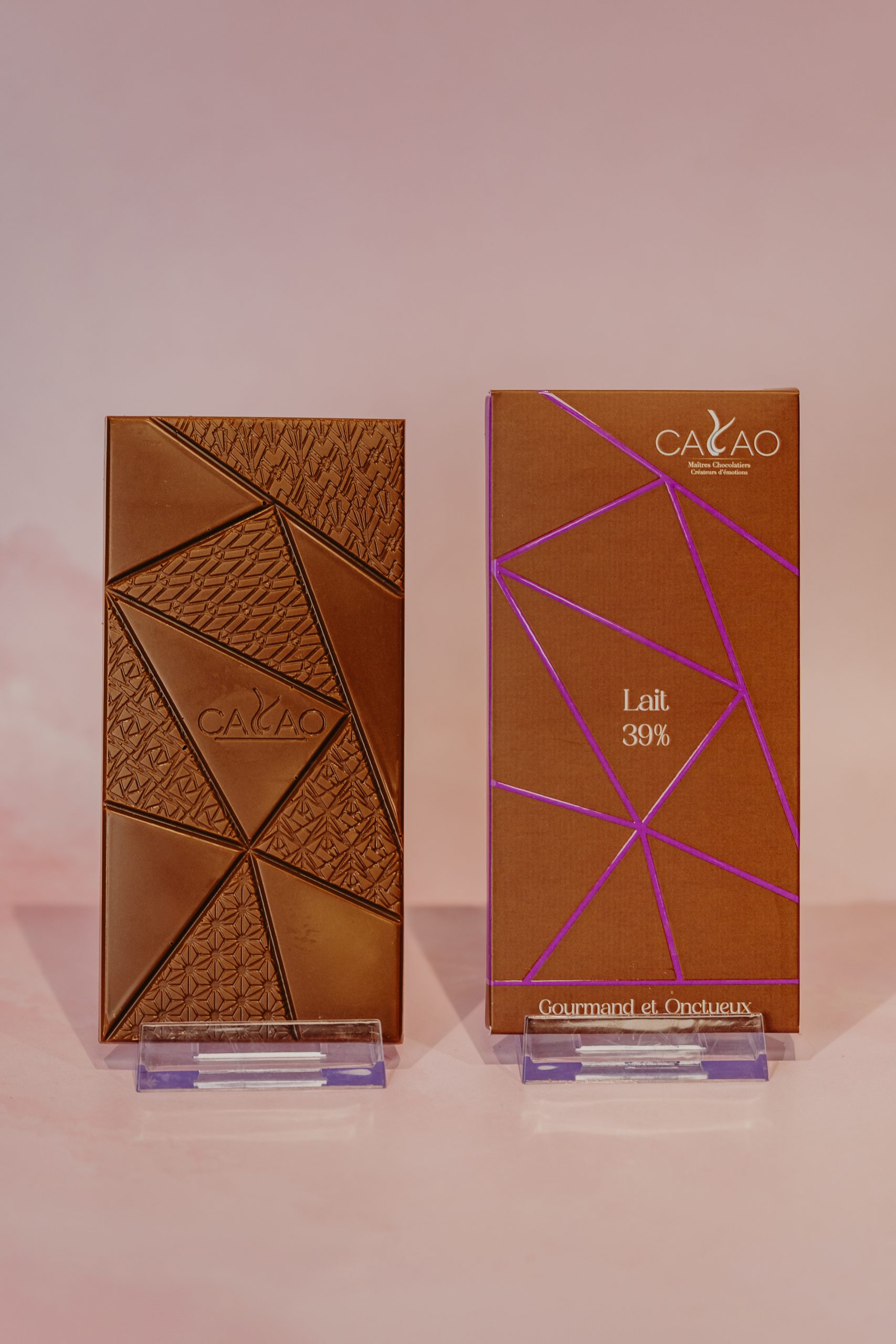 Chaque tablette est sublimée par un design sur mesure, pour un chocolat aussi beau que bon, fidèle à notre signature gustative.