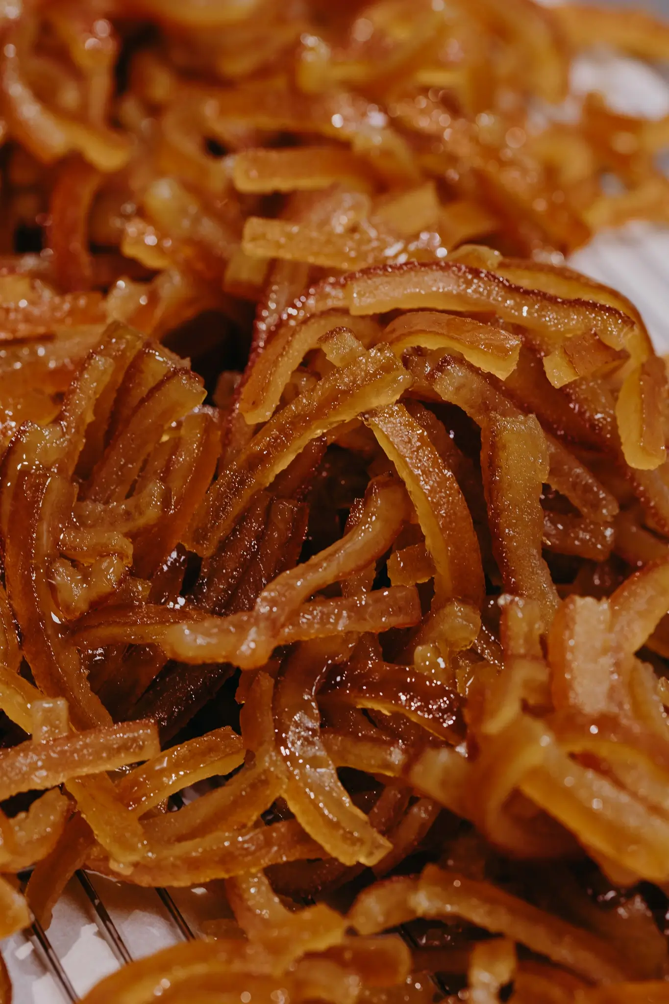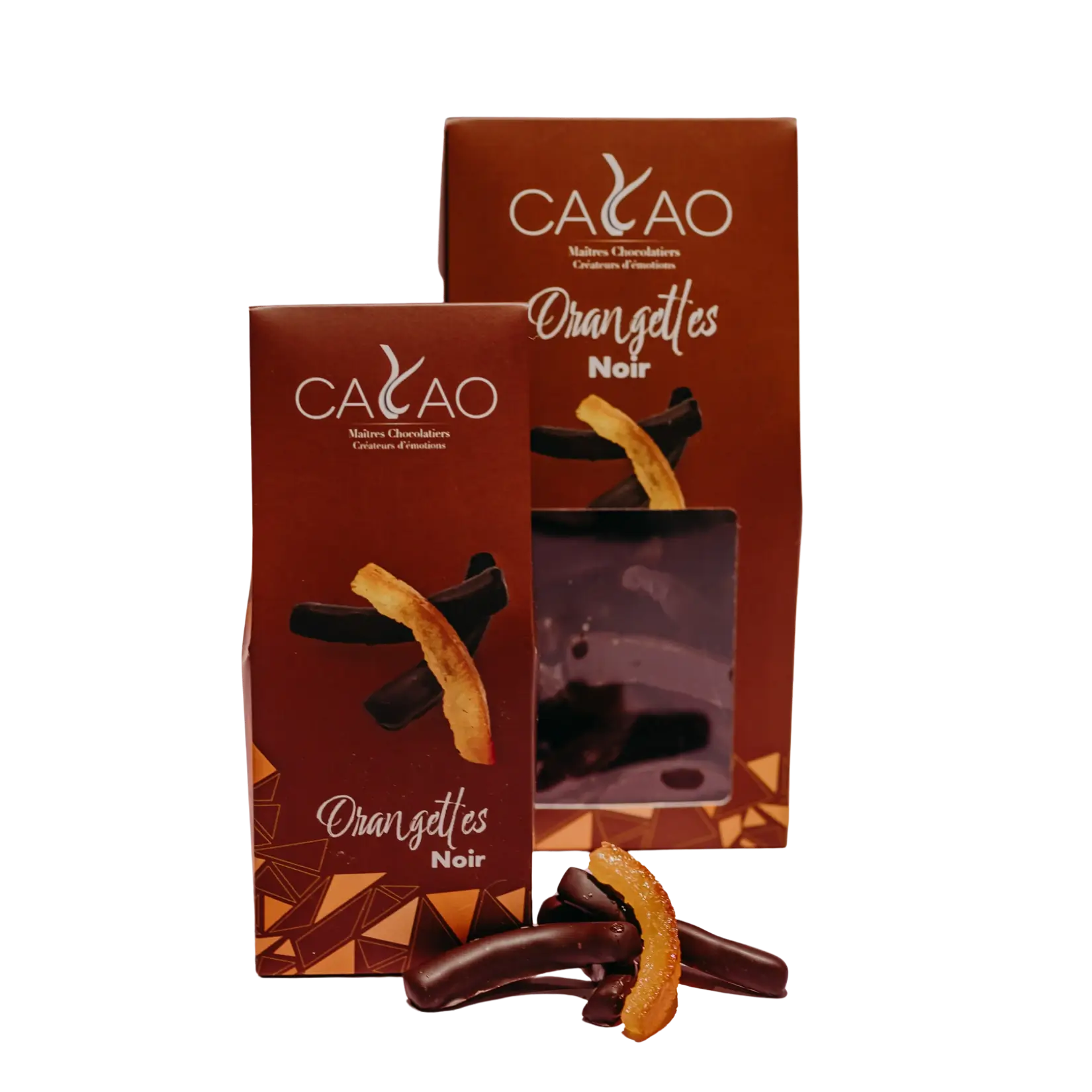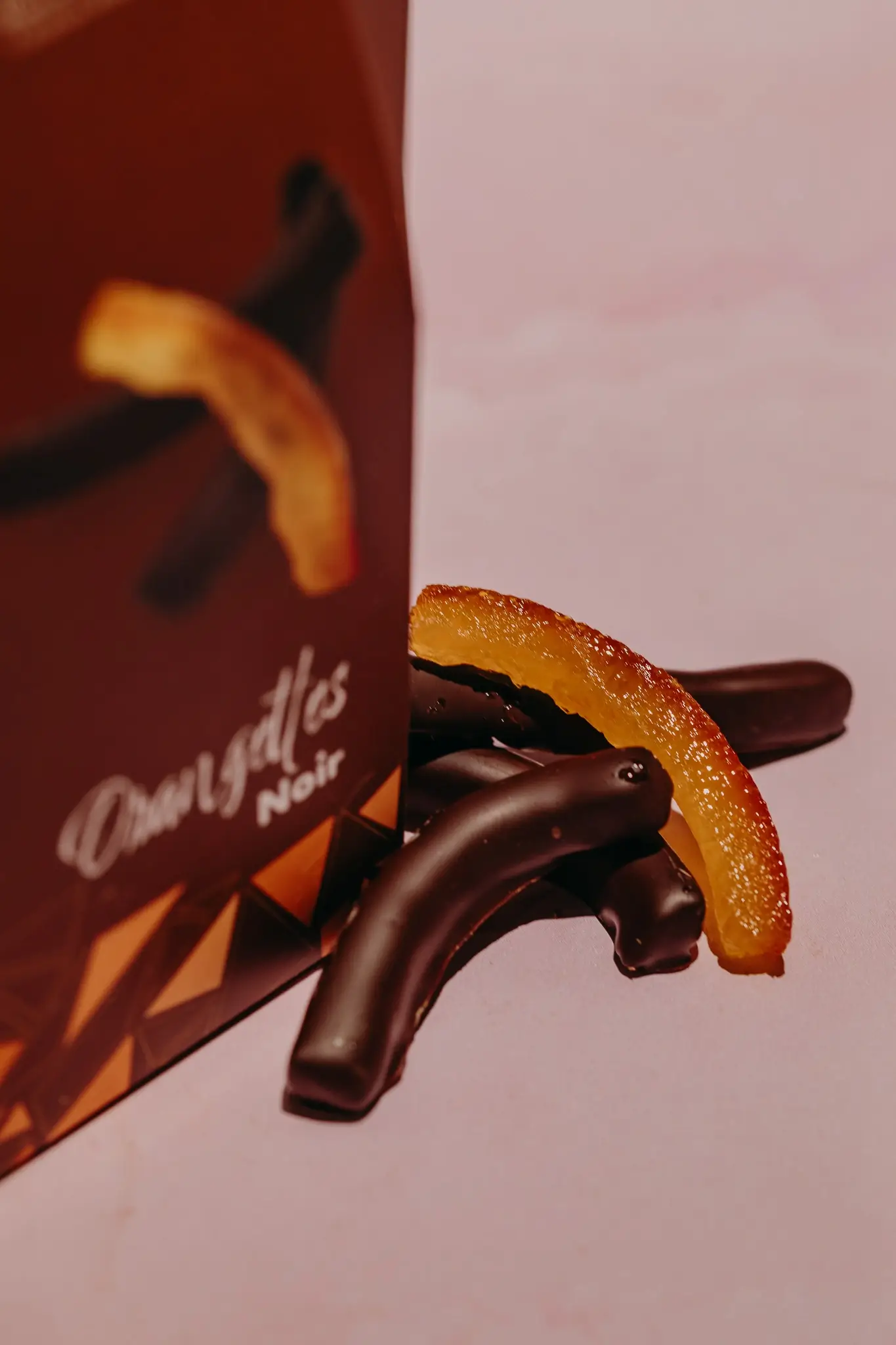 De délicates écorces d’orange confites, lentement travaillées pour révéler toute leur intensité, puis enrobées d’un chocolat noir 67% aux notes profondes.