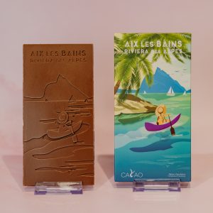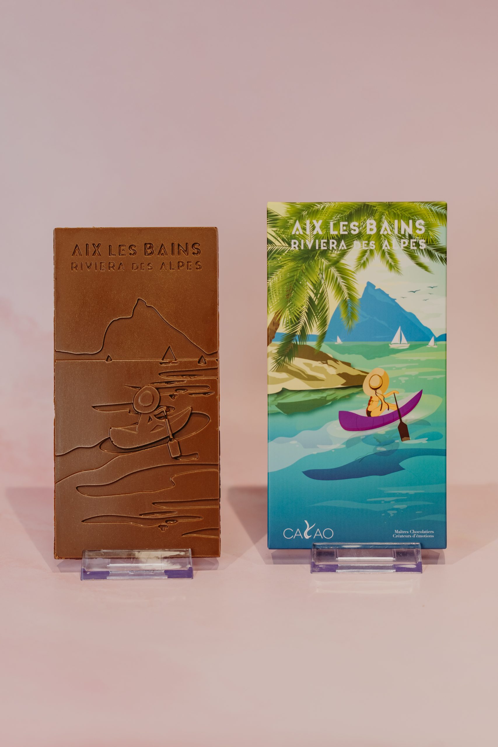 Riviera – Exclusivité Cakao est une tablette au design original, inspirée d’Aix-les-Bains, entre lac et montagne. Son relief soigné et son visuel évocateur en font une création aussi élégante à regarder que gourmande à déguster.